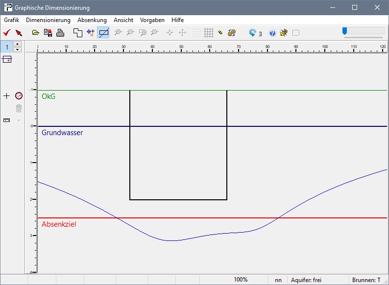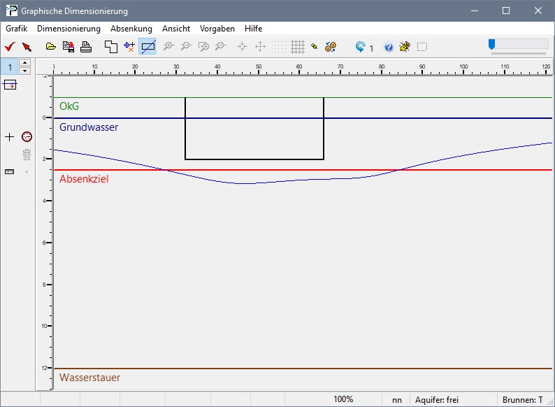 Die z-Achse in der Schnittdarstellung einer Schnittlinie ist jetzt konfigurierbar. Das ist nützlich, wenn der Wasserstauer tief liegt, denn jetzt kann die Tiefe, ab der der Schnitt gezeichnet wird, durch einen Klick auf die z-Achse eingestellt werden.