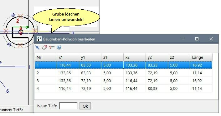 - Wird im Auswahldialog "Polygon" gewählt, dann kann eine Teilgrube bearbeitet werden.