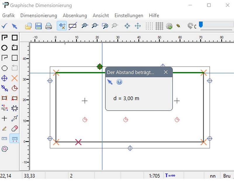 Ein Lineal zum Messen von Abständen gibt es in ProAqua seit der Version 1.0. Aber man konnte damit Abstände nur so genau messen, wie man die Maus positionieren konnte. Nun gibt es ein Tool zum Messen von beliebigen Abständen. Man zeigt auf ein Objekt, klickt und dann klickt man auf ein anderes Objekt. Danach wird der Abstand angezeigt.