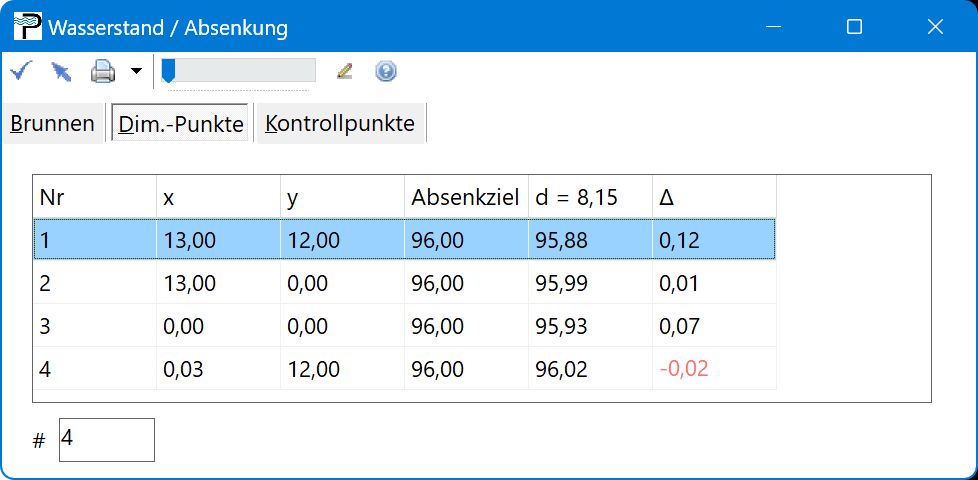 Wenn die Absenkung zu einem Zeitpunkt t berechnet wird, dann wird jetzt diese Absenkung auch in den Tabellen anzeigt. Bisher wurde immer die Absenkung im Beharrungszustand gezeigt.
