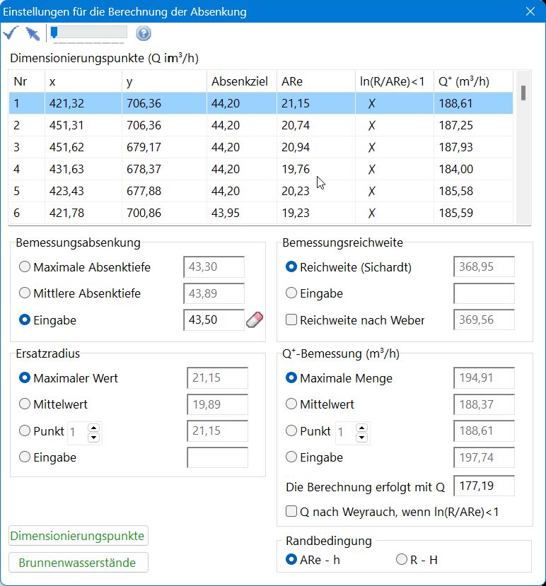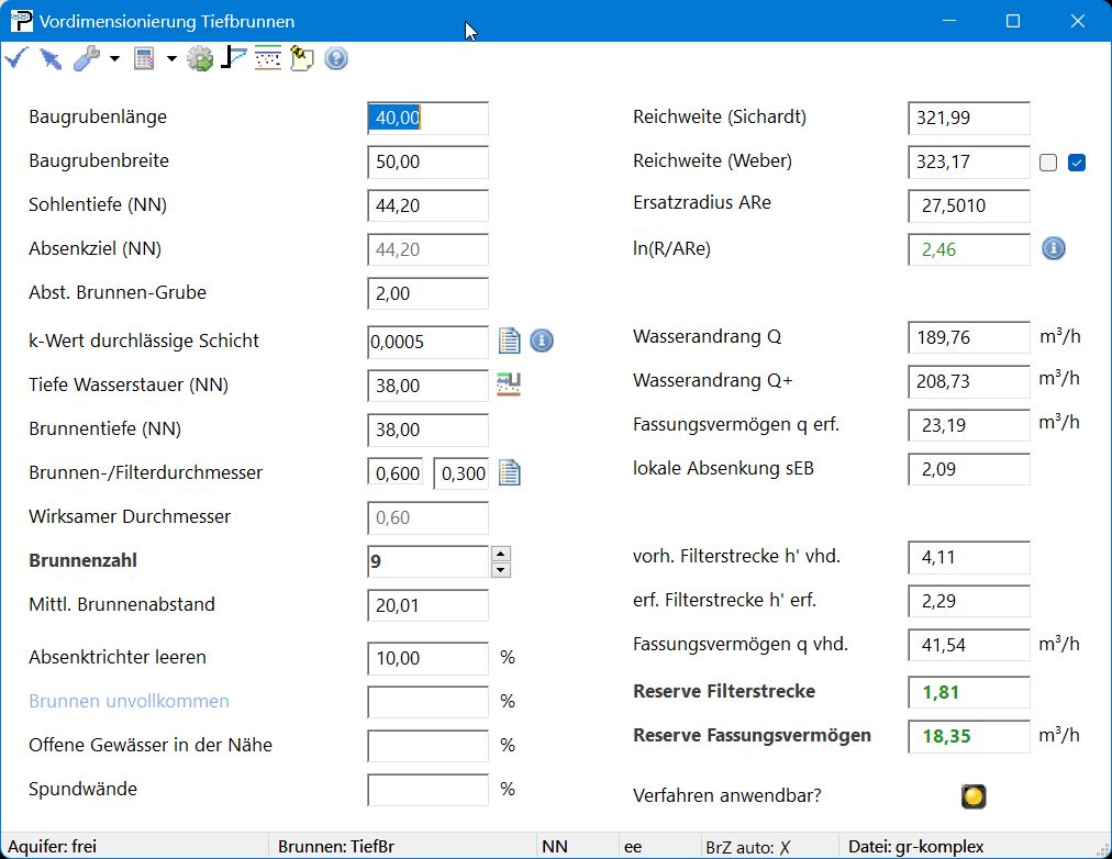 - Parametervariationen für s, k, H zur vergleichenden Ermittlung des Wasserandrangs und der Brunnenzahl