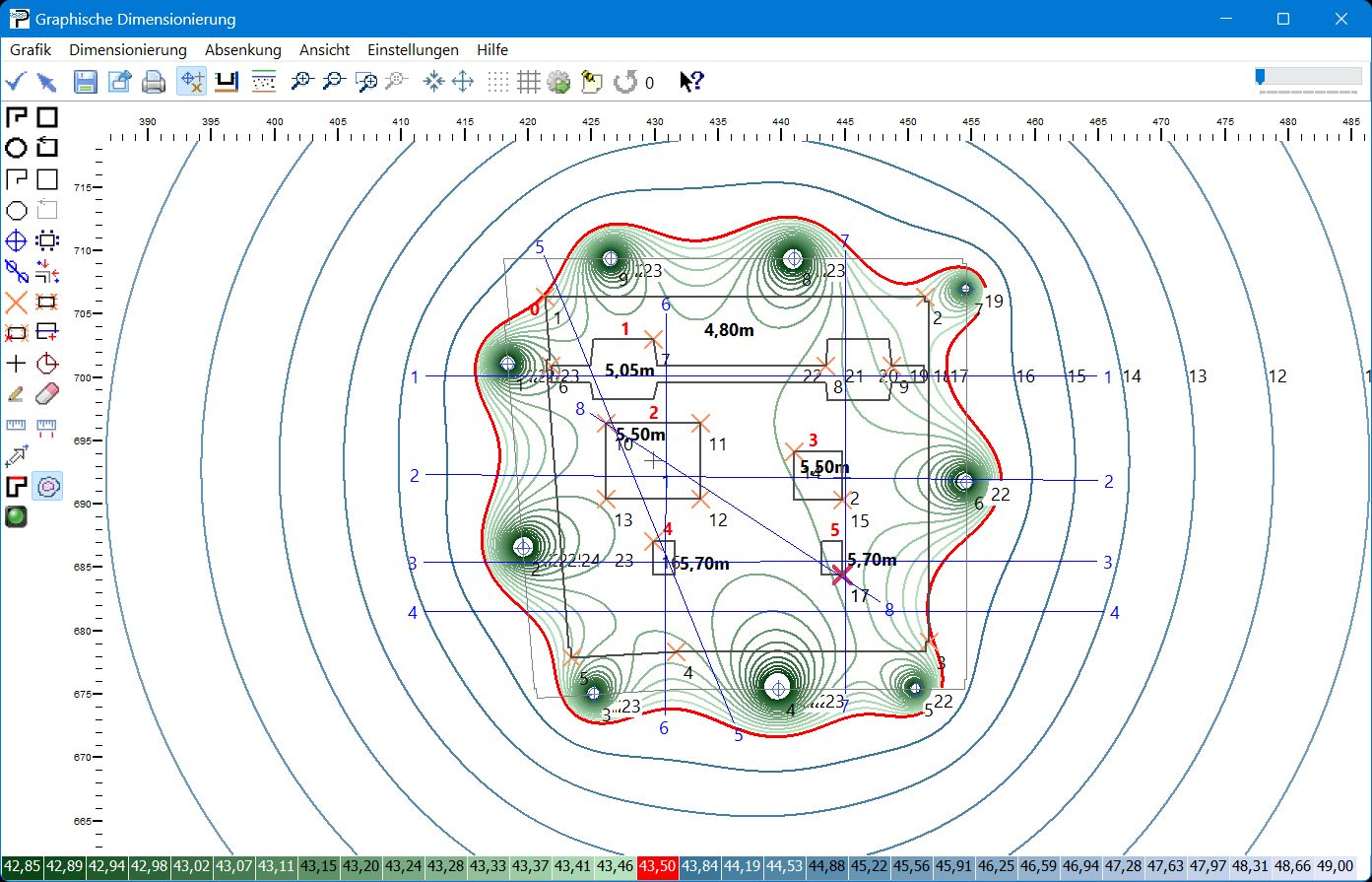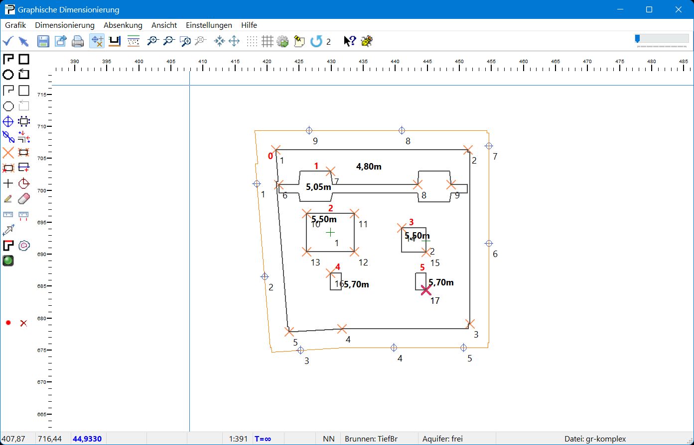 - Berücksichtigung von unterschiedlichen Absenktiefen in einer Baugrube.