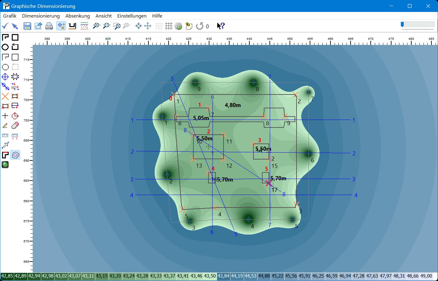 - CAD Zeichenwerkzeuge zur Erstellung eines beschrifteten Lageplans.