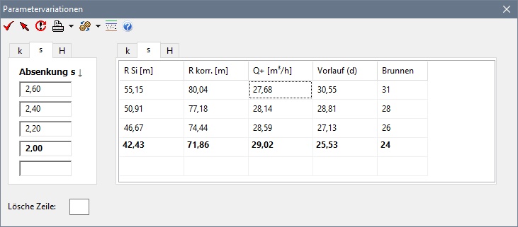 Nur die Verwendung der Minimalreichweite bildet die bei der Variation der Absenktiefe zu erwartende Änderung des Wasserandrangs Q richtig ab.