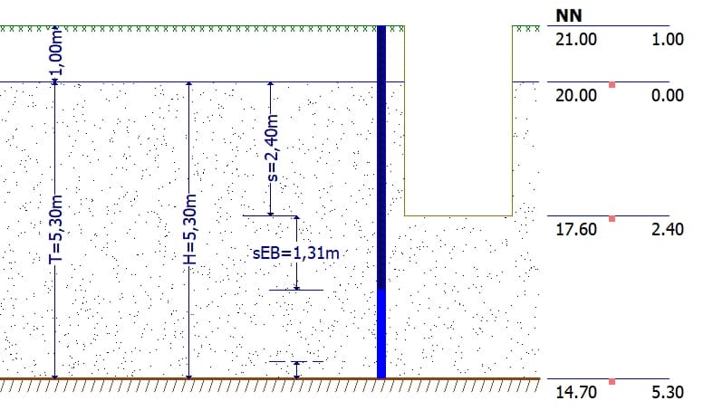 Für die Grundwasserabsenkung eines Bauprojekts im Raum Gronau (Westf.) war durch den Auftraggeber die Berechnung des Wasserandrangs bei verschiedenen Absenktiefen verlangt. Die mit ProAqua ermittelten Ergebnisse entsprachen nicht den Erwartungen, denn der Wasserandrang wurde immer größer, je kleiner die Absenktiefe gewählt wurde.